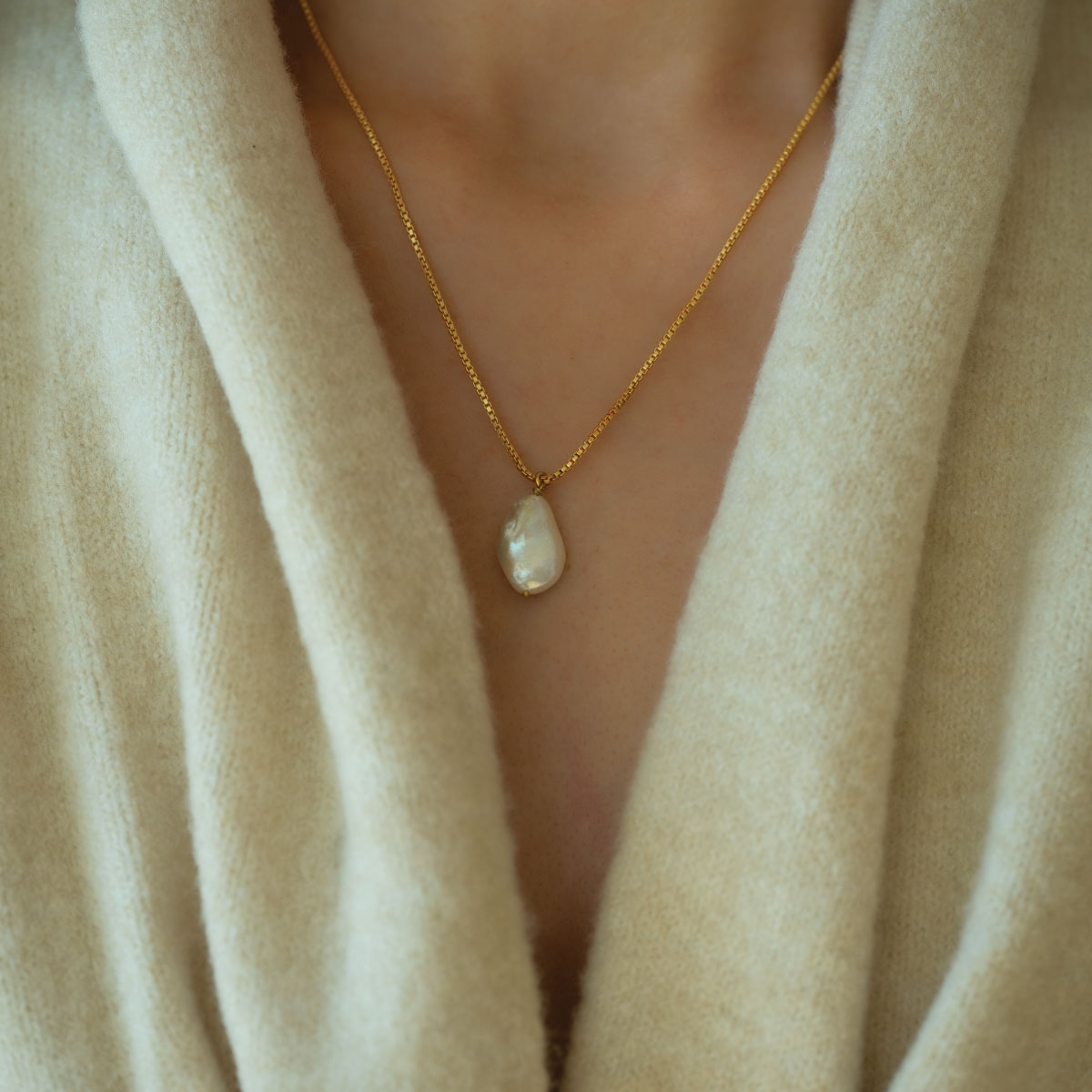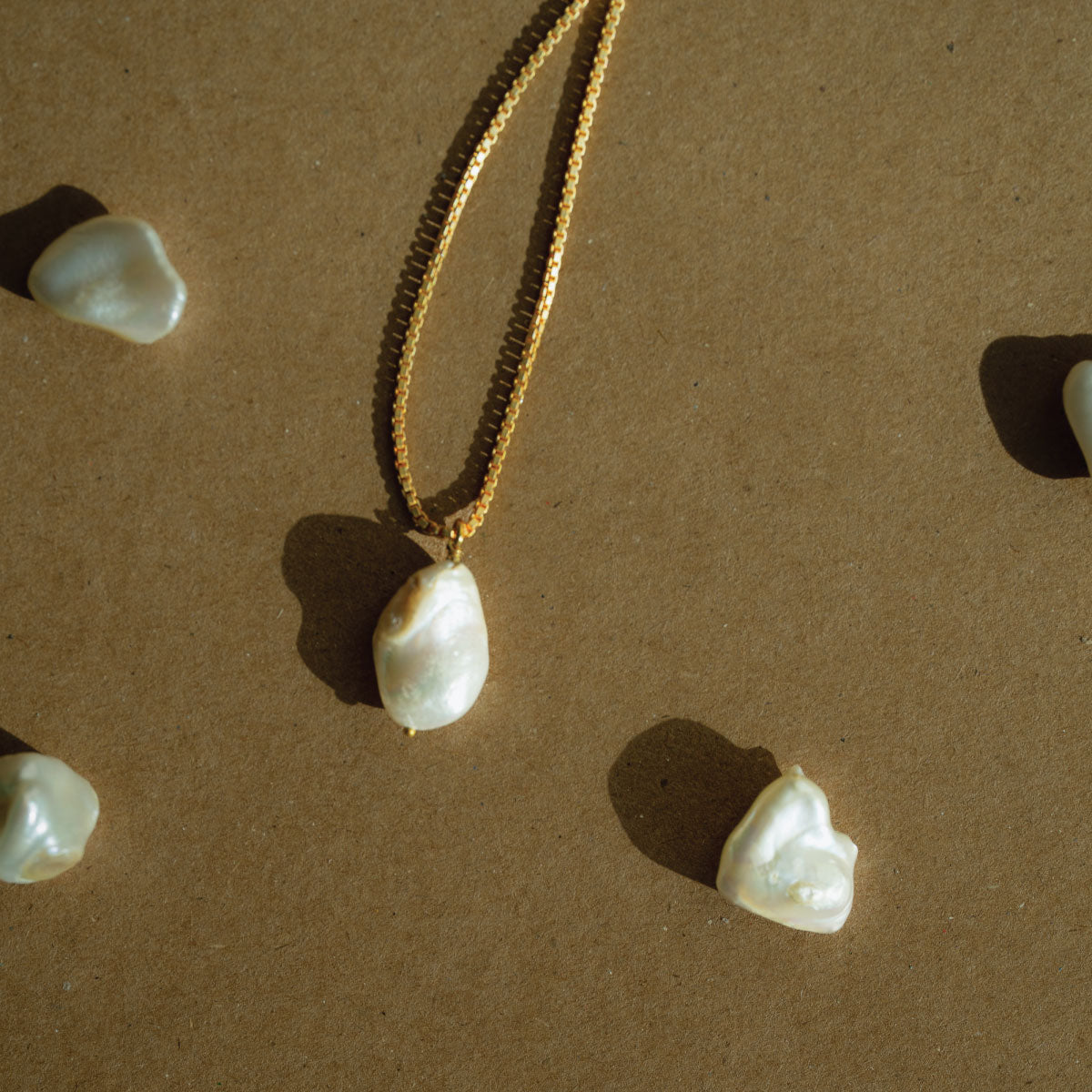 Material: Raw baroque pearl (unpolished) with gold plated chain